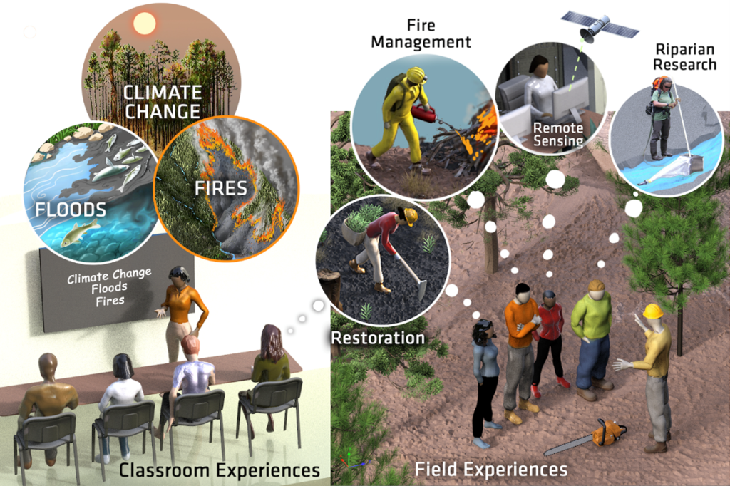 • Un nuevo grupo de amigos con quienes puede investigar los problems asociados con incendios forestales, inundaciones, y sequía y también los sistemas sociales en que tenemos navegar.