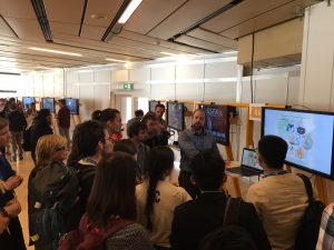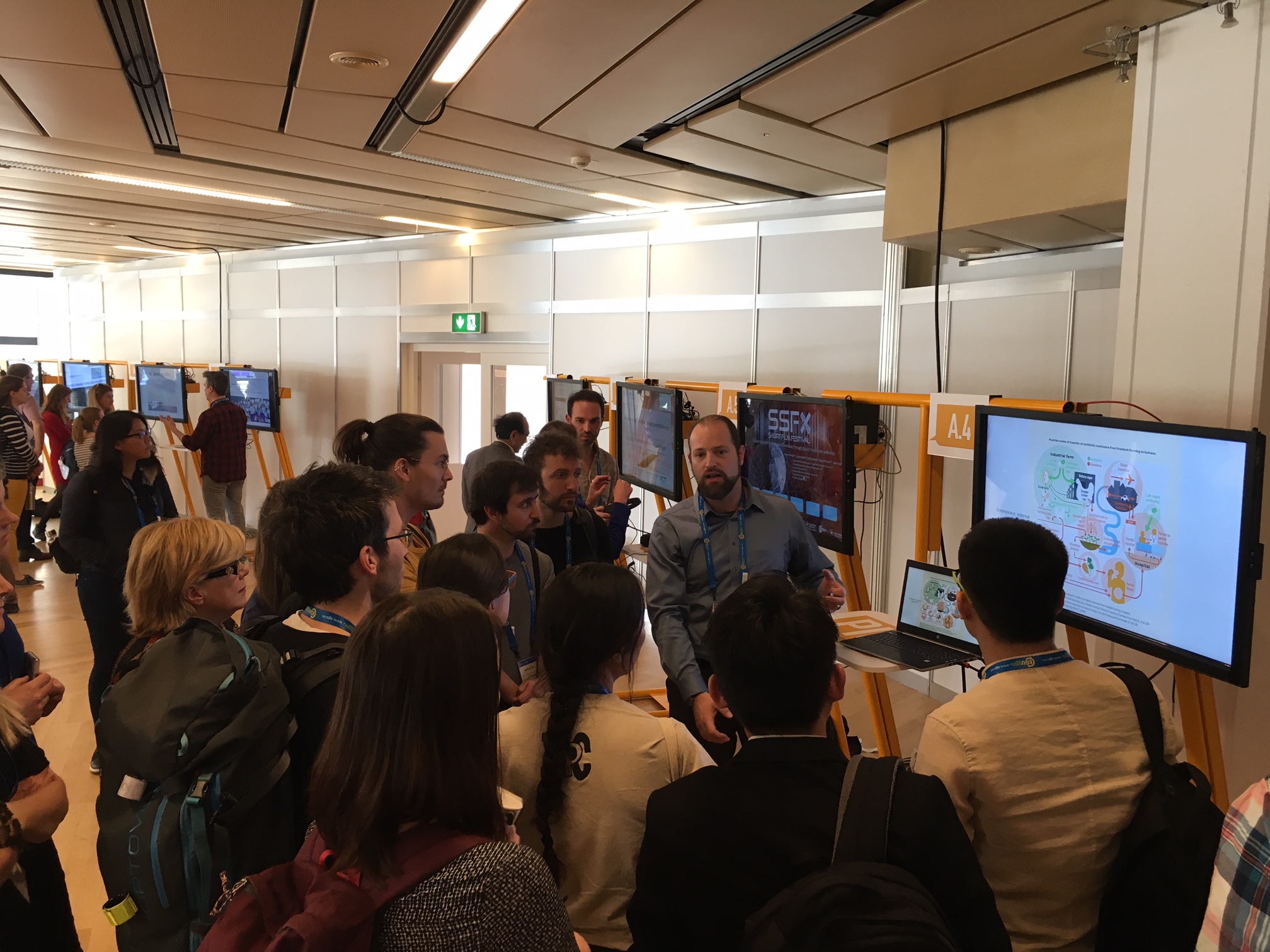 After the rapid-fire madness of 15 back-to-back two-minute presentations, the audience flocked to Victor Leshyk’s screen. The topic was science-art integration, and in two minutes Victor had explained his vision about the role for the didactic in the intersection of art and passion. In the discussion session he presented his works showing a range of visual metaphor. This is not elitist art – all are welcome. It’s art for learning, art for science literacy, and art for science and society.