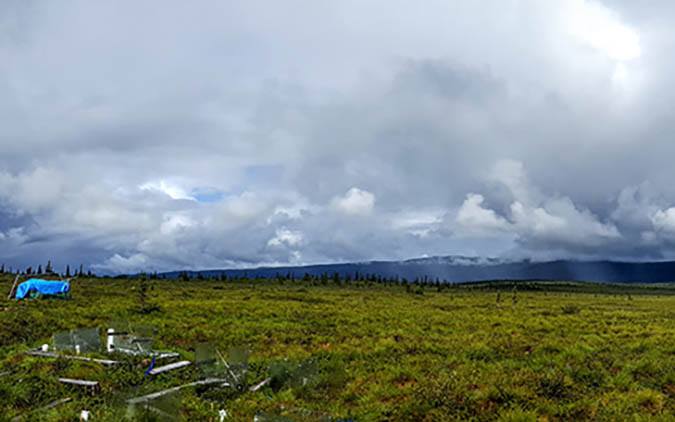 Because dissolved carbon flows laterally through the spongy tundra landscape before entering a stream, Emily takes samples in multiple locations within the Eight Mile Lake watershed. This allows her to try to trace and quantify carbon exported from the study site and released into the atmosphere between the sample points. Measuring the sideways flow of carbon is important because it turns out that estimates of net carbon exchange may be off by as much as 20% if this lateral movement of carbon is not considered. Emily’s work is taking place within a permafrost research site where data have been gathered since 2004 to determine the extent to which warming temperatures and resulting permafrost thaw are releasing additional carbon into the atmosphere, thereby exacerbating climate change.