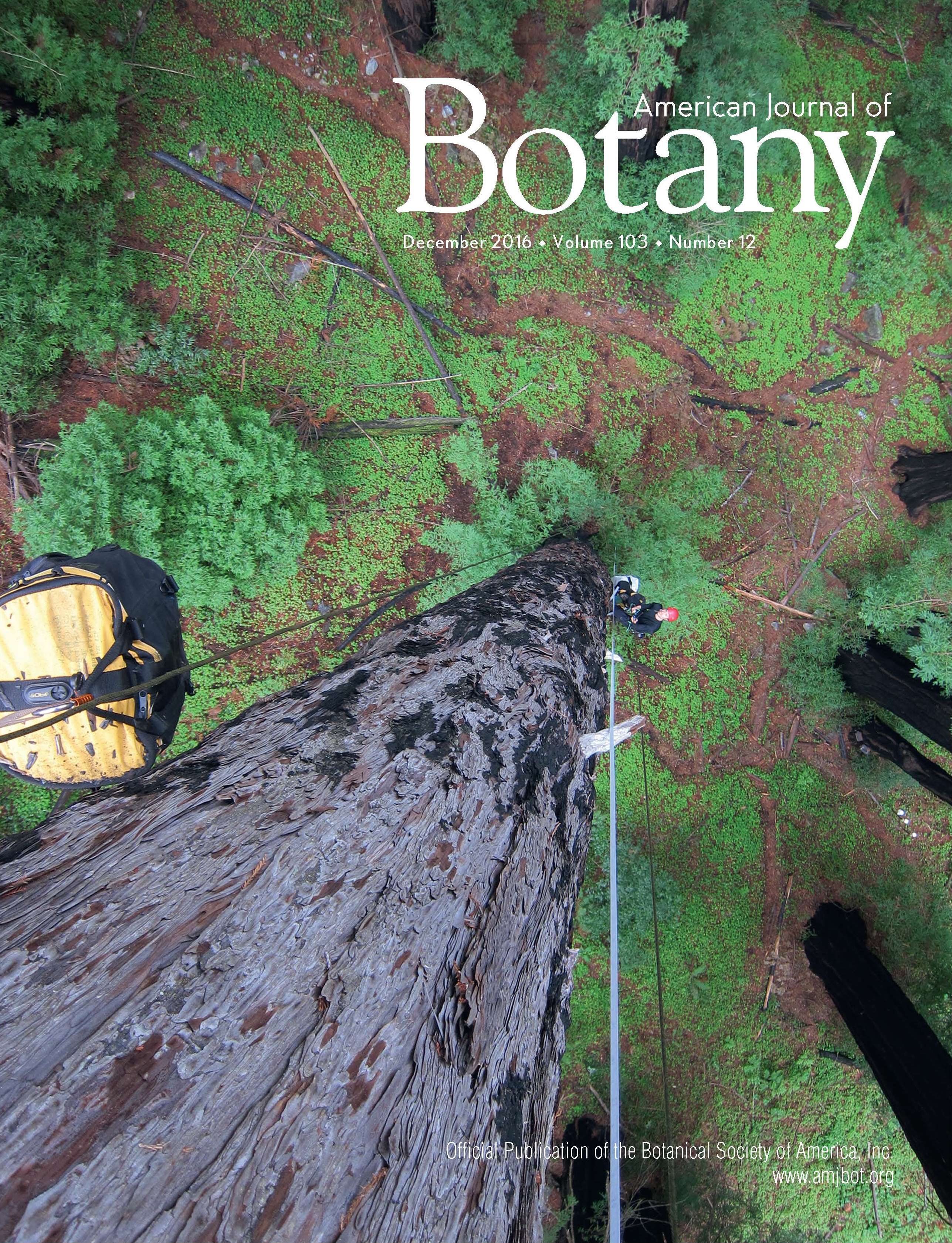Ready to climb a California coast redwood (Sequoia sempervirens), to sample branches for fungi. In this issue, Harrison et al. delved into a largely unexplored reservoir of fungal diversity—the forest canopy—using a high-throughput sequence-based approach to characterize the composition of the fungal community at different heights within the crowns of redwood trees at sites spanning the geographical range of the world’s tallest species. They found pervasive shifts in community composition with height of the trees and distinct assemblages of fungi on individual trees, which warrant further research to understand the ecological role and consequences of such vertically stratified fungal communities in tree species. See pp. 2087–2095, Harrison et al.—Vertical stratification of the foliar fungal community in the world’s tallest trees.Image credit: George Koch, taken at Landel’s Hill-Big Creek Reserve, California.